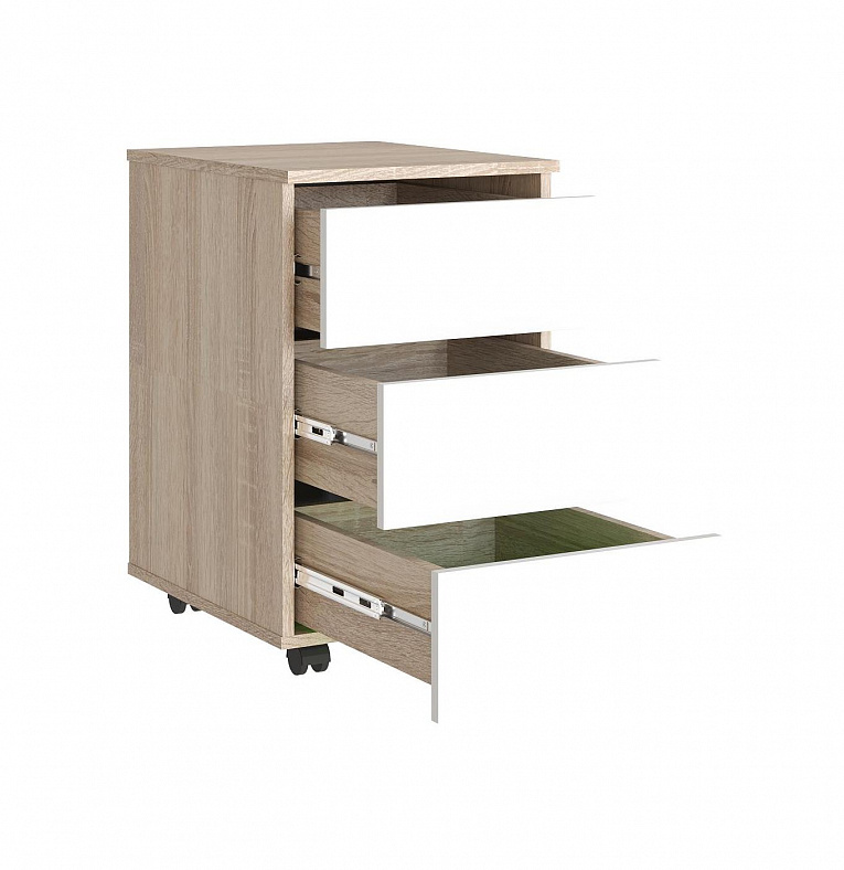 Тумба подкатная имеет три ящика с усиленным дном (ЛДСП). направляющие шариковые. Наличие роликов позволяет легко перекатывать тумбу с одного места на другое. Удобное открытие захватом.