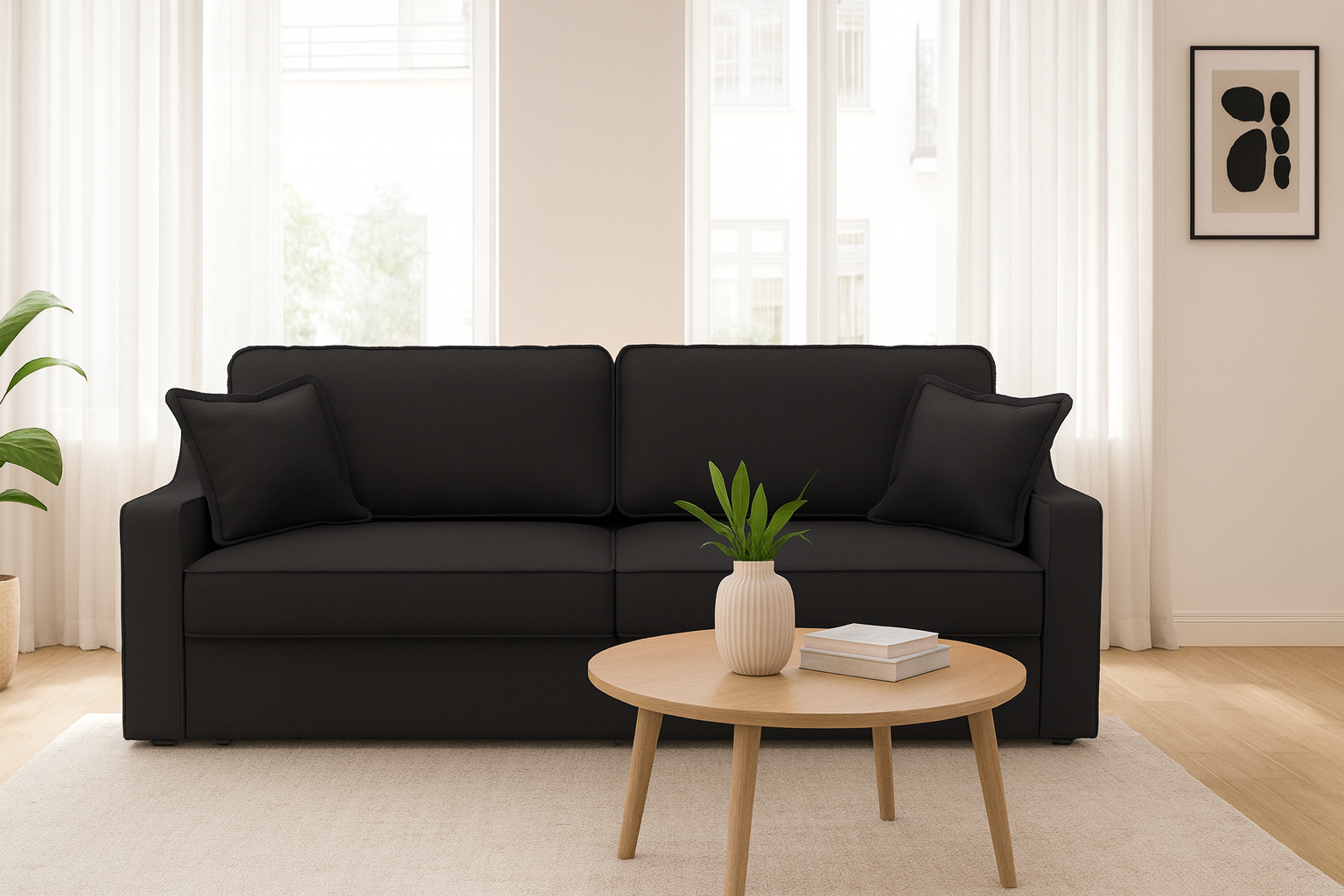 Две большие приспинные и две декоративные подушки добавляют мягкость и удобство, а элегантный кант подчеркивает современный стиль дивана.