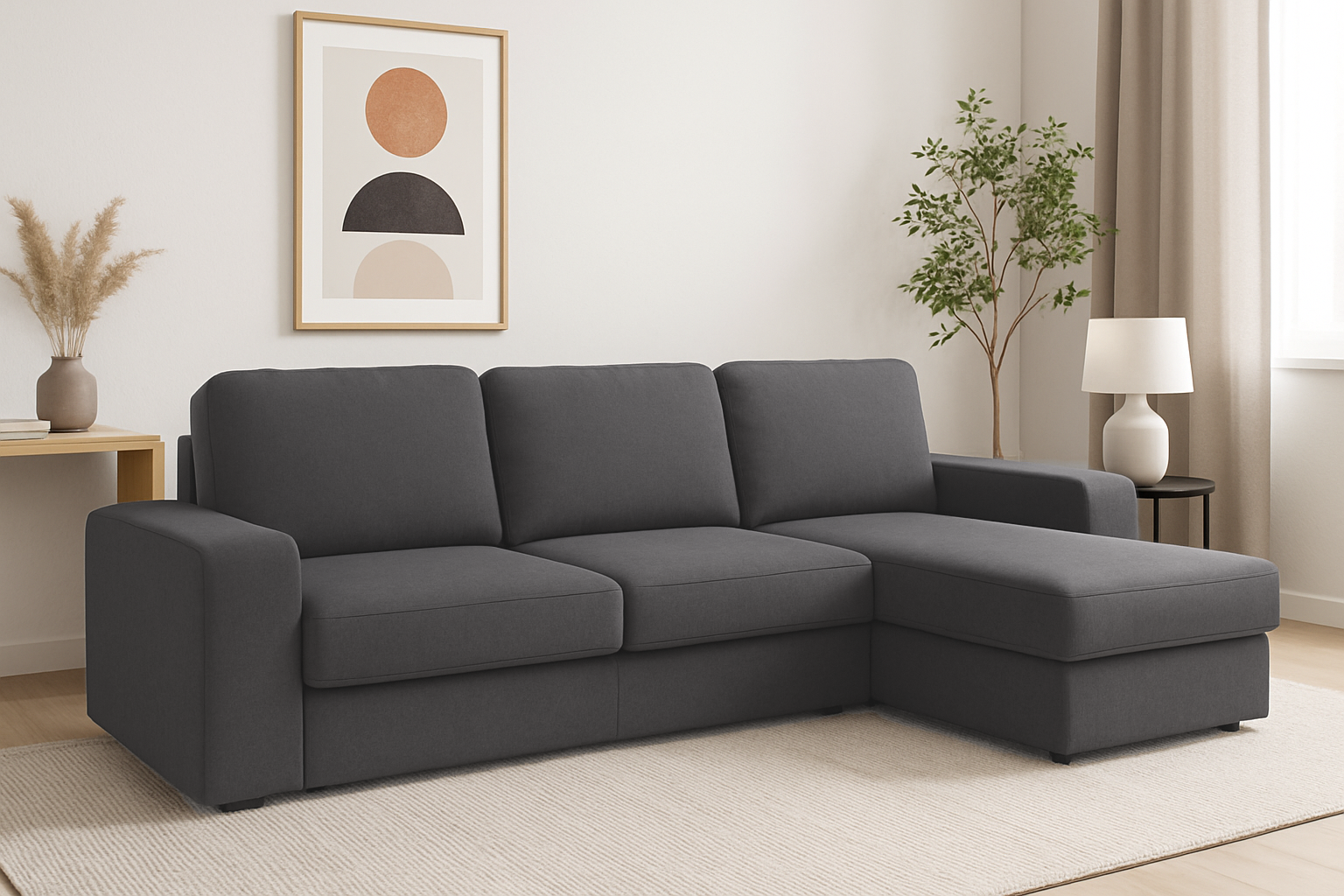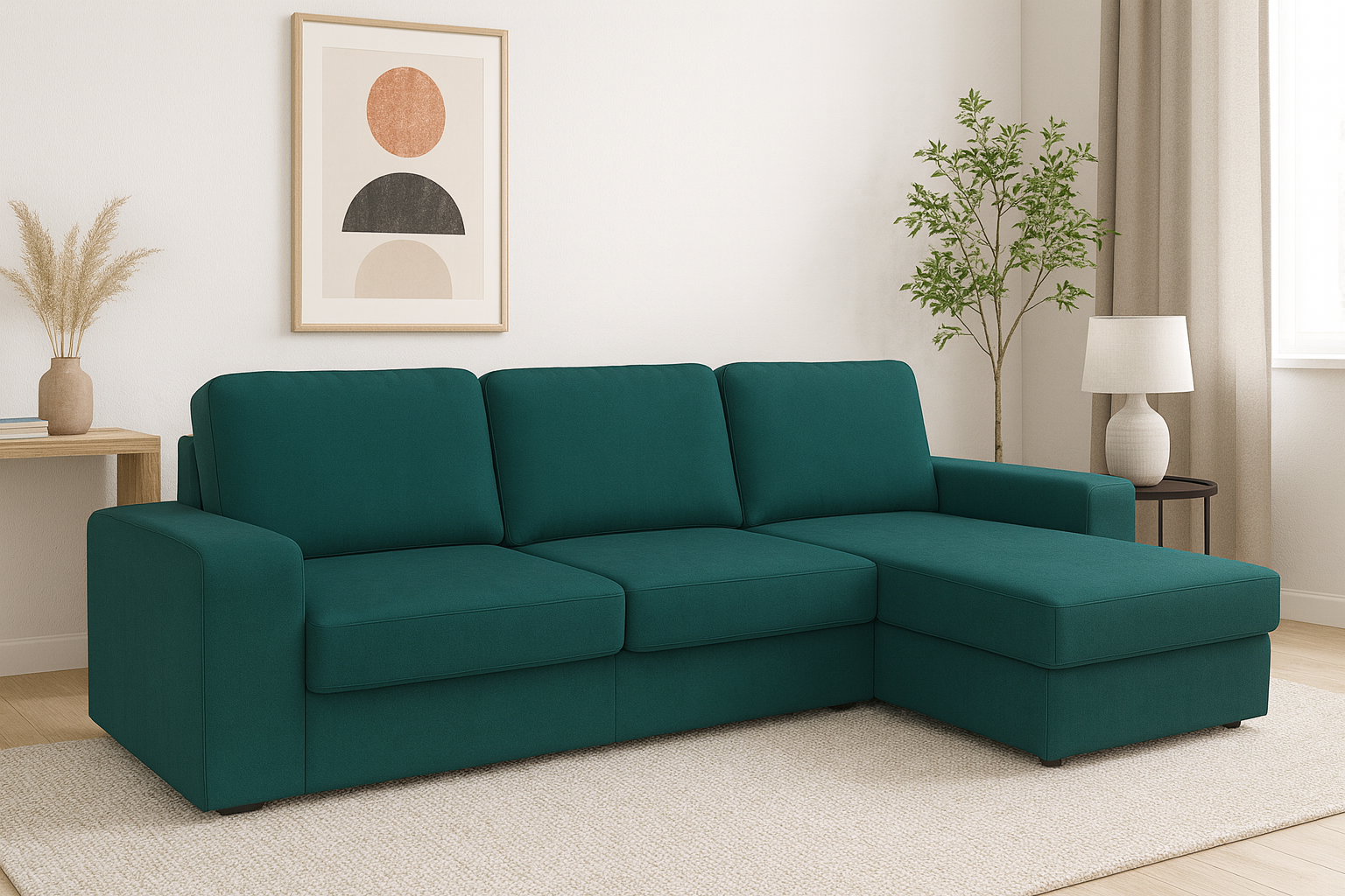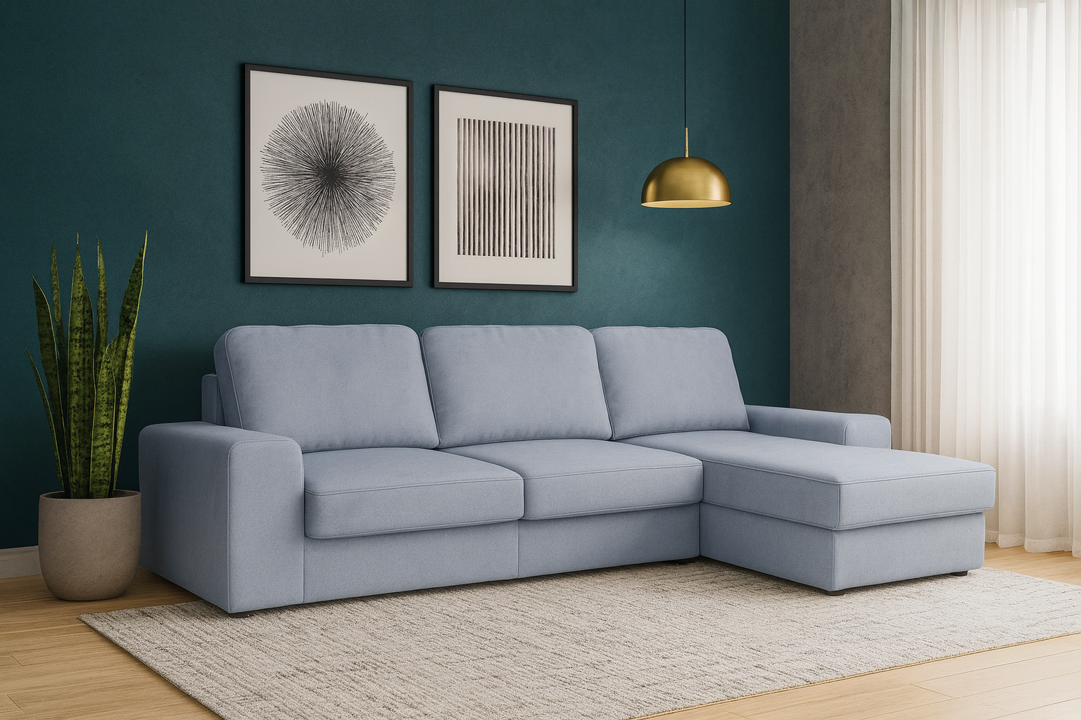 При заказе дивана Альма вы можете выбрать удобное расположение угла — правый или левый, чтобы максимально гармонично вписать его в интерьер вашего помещения. Пожалуйста, уточните предпочтительный вариант угла при оформлении заказа для идеального соответствия вашим потребностям.