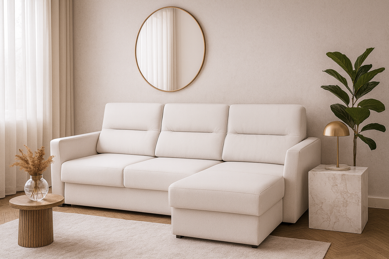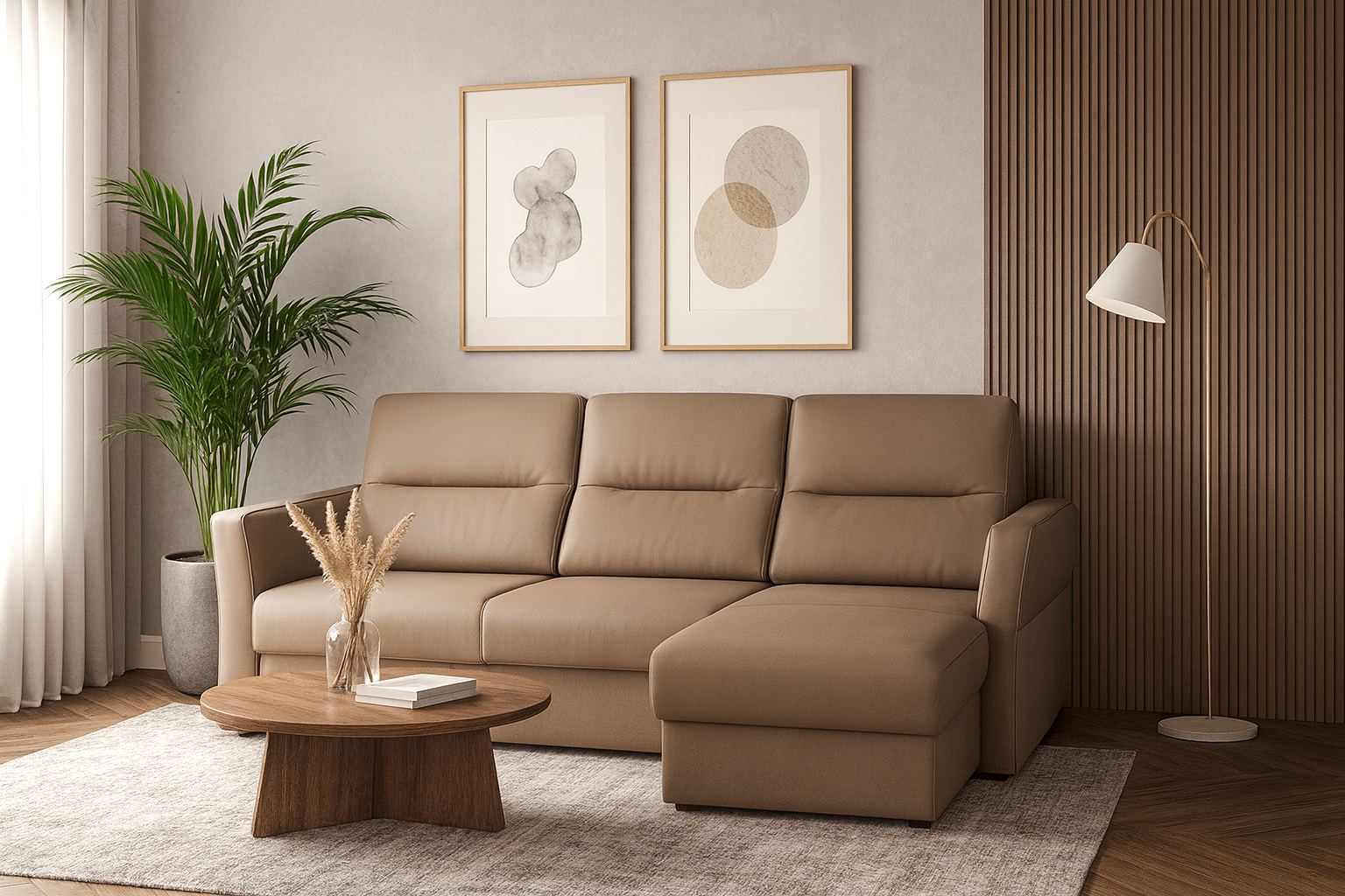 угловой диван Палермо в лаконичном современном стиле с тремя фиксированными подушками спинки, просторным бельевым ящиком и удобной системой раскладывания в спальное место. Его универсальный дизайн органично дополнит любую обстановку, визуально разделит помещение на зоны и обеспечит уютную атмосферу для релакса. Благодаря продуманной конструкции модель сочетает эстетику, функциональность и повышенный комфорт для ежедневного использования.