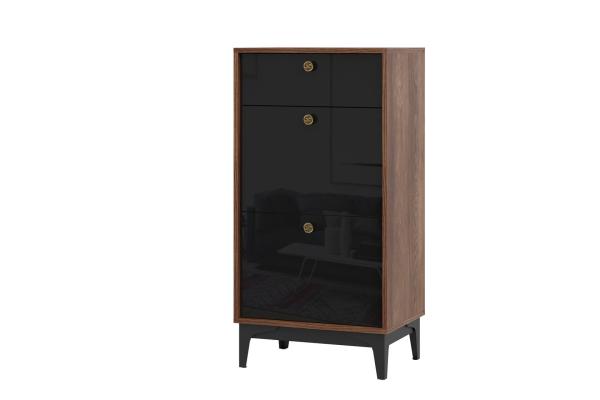 Комод Брасс порадует удобством и эстетикой. Комбинированное наполнение подходит для хранения самых разных вещей. Ящик плавно выдвигается на всю глубину, открывая полный обзор содержимого. Благодаря изящным ручкам и высоким опорам модель смотрится очень элегантно.