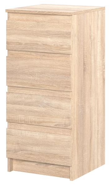 Комод оснащен четырьмя ящиками с роликовыми направляющими, что обеспечивает плавное и бесшумное открывание и закрывание.