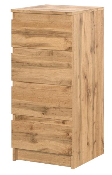 Серия мебели STERN отличается современным дизайном без лишних деталей, который будет уместен в любой комнате. Удобные скошенные ручки на фасадах и модные цвета декоративной отделки придают комоду элегантный вид.
