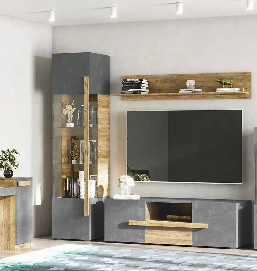Модульная программа «Тесс» – ультра модная коллекция мебели для гостиной и спальной комнаты. Настоящее произведение мебельного искусства с фантастически приятным сочетанием цветовых оттенков: Дуб Крафт Золотой,и Пепельный темный. В коллекции представлены напольные и настенные элементы. Коллекцию отличает оригинальный дизайн и принципиально новая конструкция отдельных модулей.
