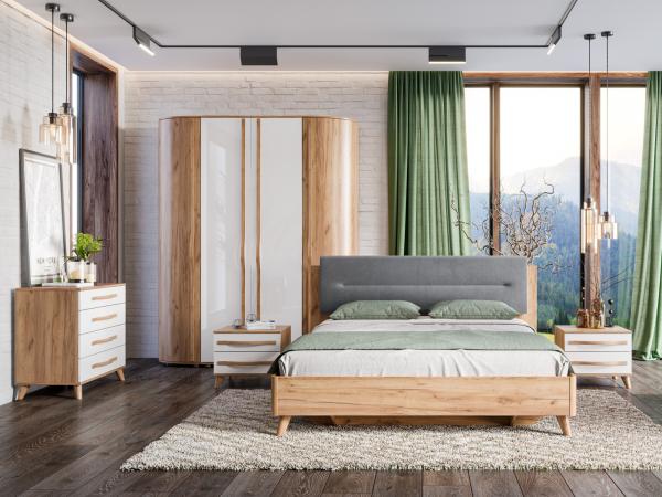 Комплект для спальни из модульной коллекции Марта в скандинавском стиле с белыми глянцевыми фасадами - это прекрасный выбор для тех, кто хочет создать светлую и уютную атмосферу в спальне.