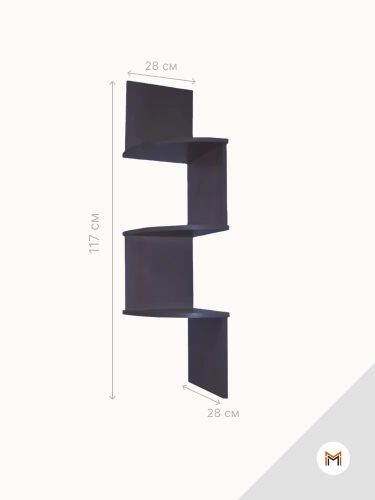 За счет многоуровневой 3х ярусной конструкции становится очень вместительной при достаточно компактных размерах – 280х280х1170. Здесь можно разместить награды, медали, книги, комнатные растения и многое другое.