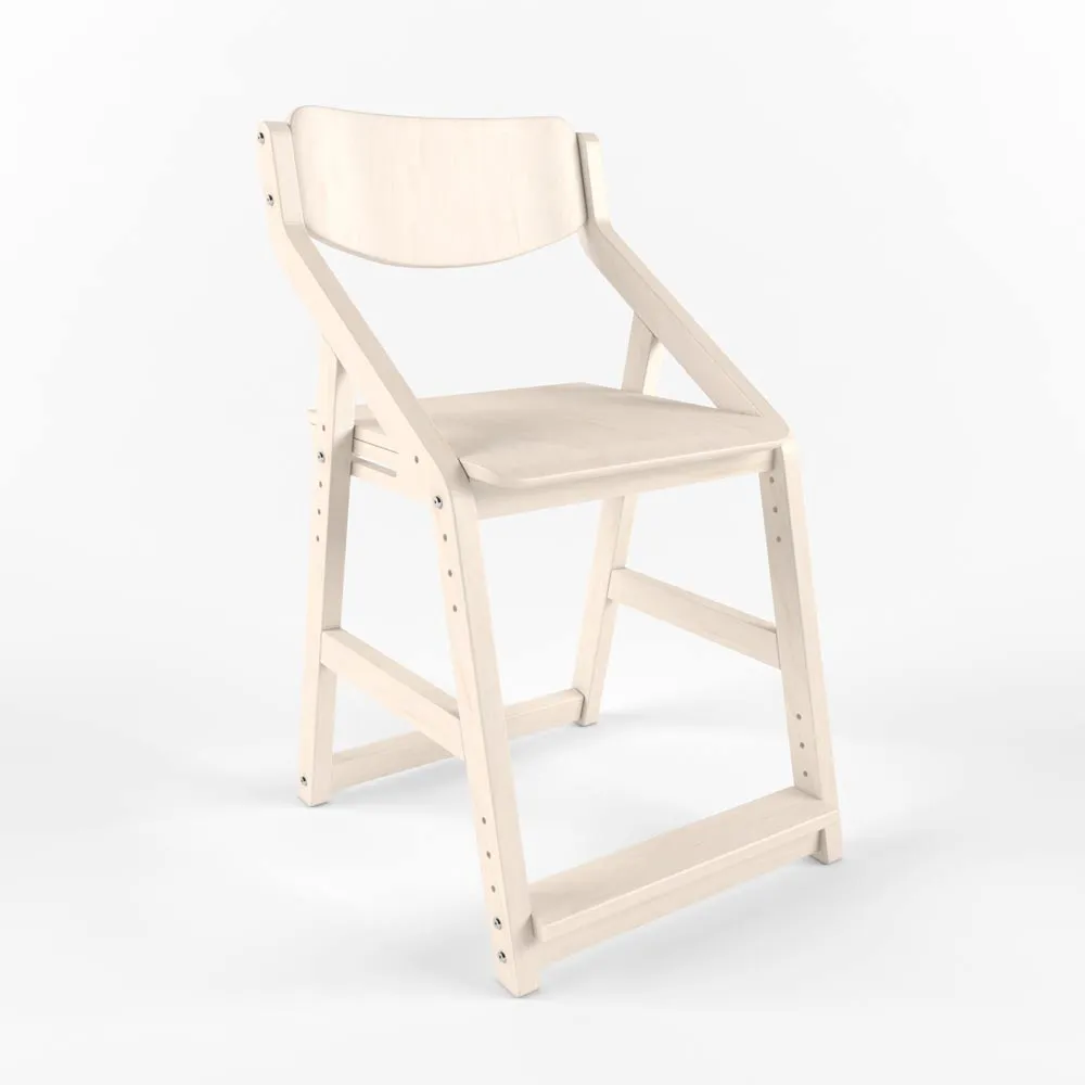 Растущий стул коллекция "Робин Вуд" изготовлен из массива березы (каркас) и фанеры, покрытый эмалью. Нагрузка на стул 100 кг. Стул предназначен для сидения за взрослым письменным столом детям с 6 лет.