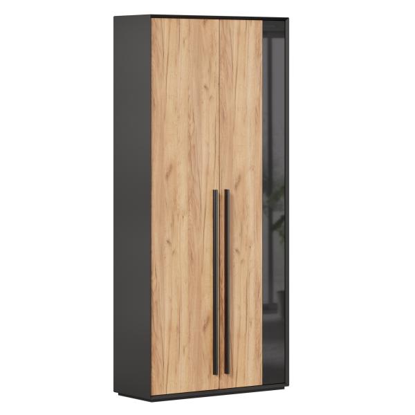 • За двумя распашными дверями по одной полке вверху и внизу шкафа.