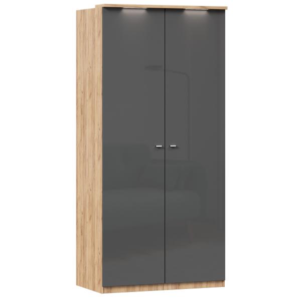 • За 2 распашными фасадами в цвете «Антрацит» глянец 3 полки и штанга для одежды. Высота ниши со штангой 1250 мм.