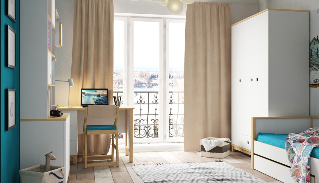 Шкаф двухстворчатый для одежды с ящиками - элемент модульной системы для детской/подростковой комнаты от фабрики "38 Попугаев".