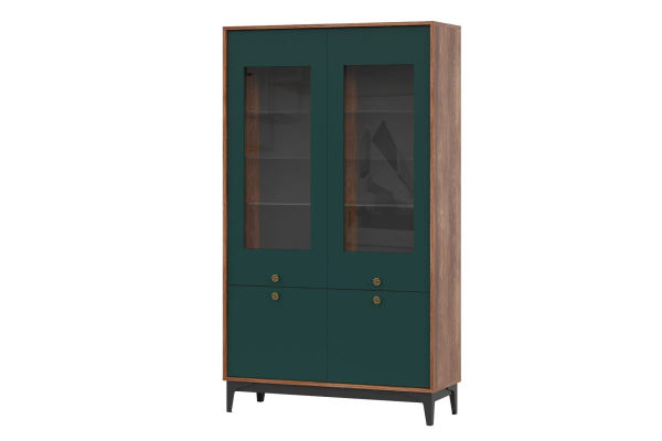 Шкаф-витрина Брасс станет изюминкой интерьера благодаря элегантным фасадам с изящными ручками и высоким контрастным ножкам.