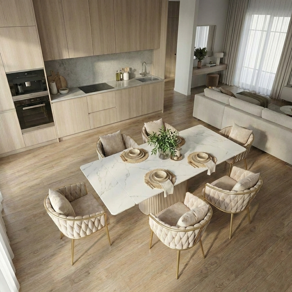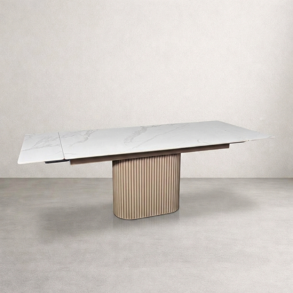 Благодаря торцевому механизму раскладывания, он легко трансформируется: длина столешницы увеличивается до 220 см. Это превращает обеденную зону в пространство для настоящего пиршества, где с комфортом разместятся 8 и более персон.