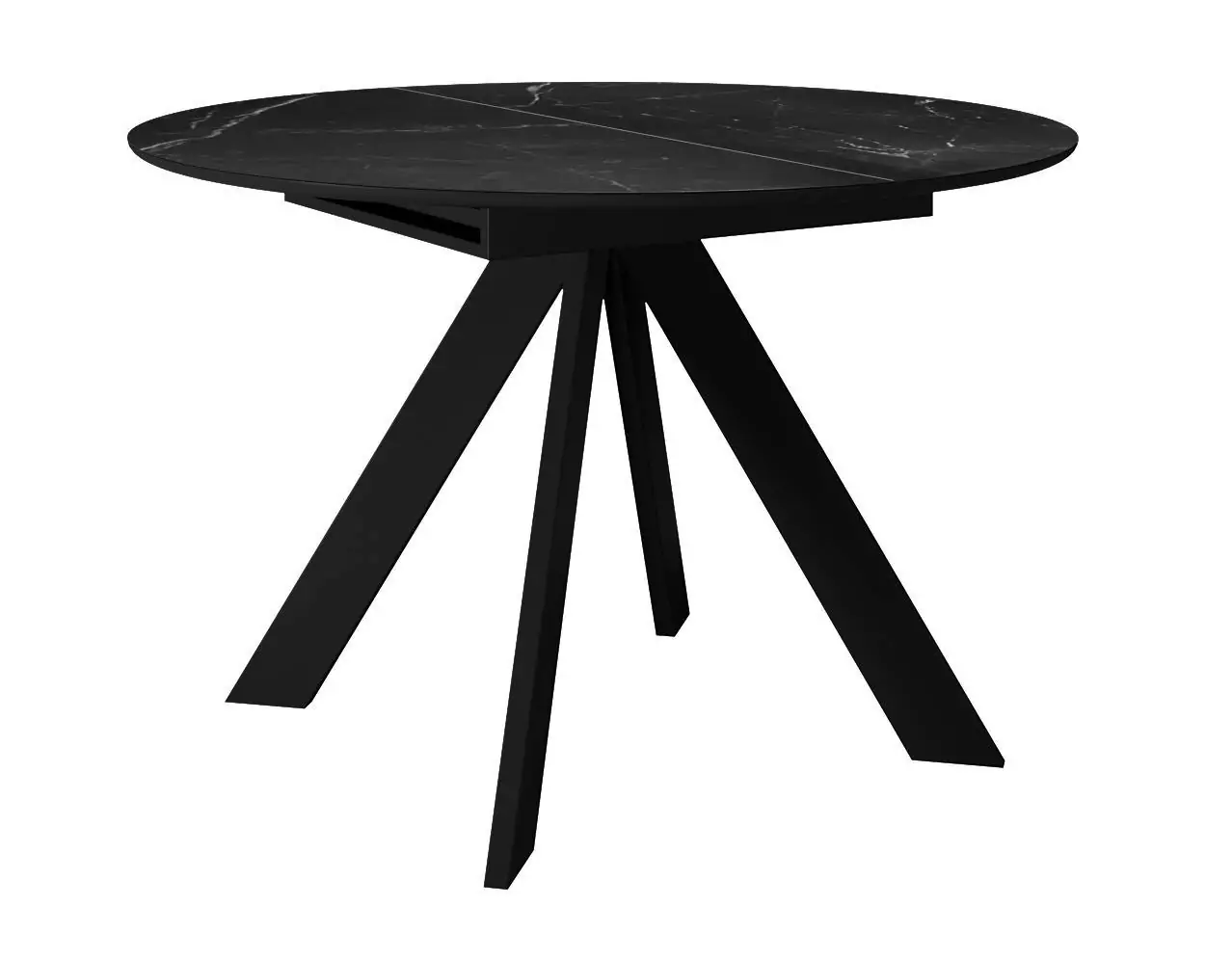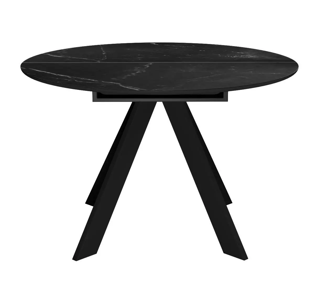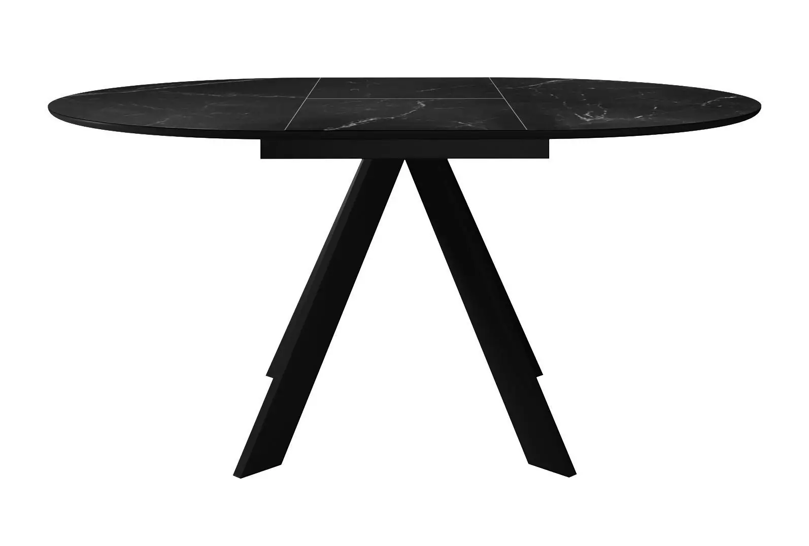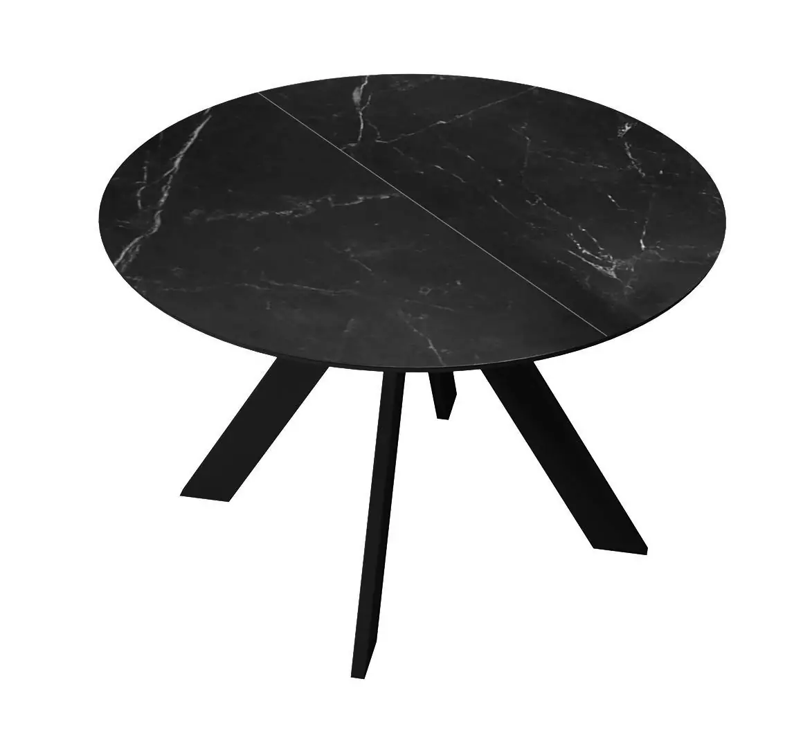 Выполненный в актуальном дизайне с керамической столешницей под мрамор и черным металлическим основанием, он станет стильным акцентом в интерьере кухни, столовой или гостиной.