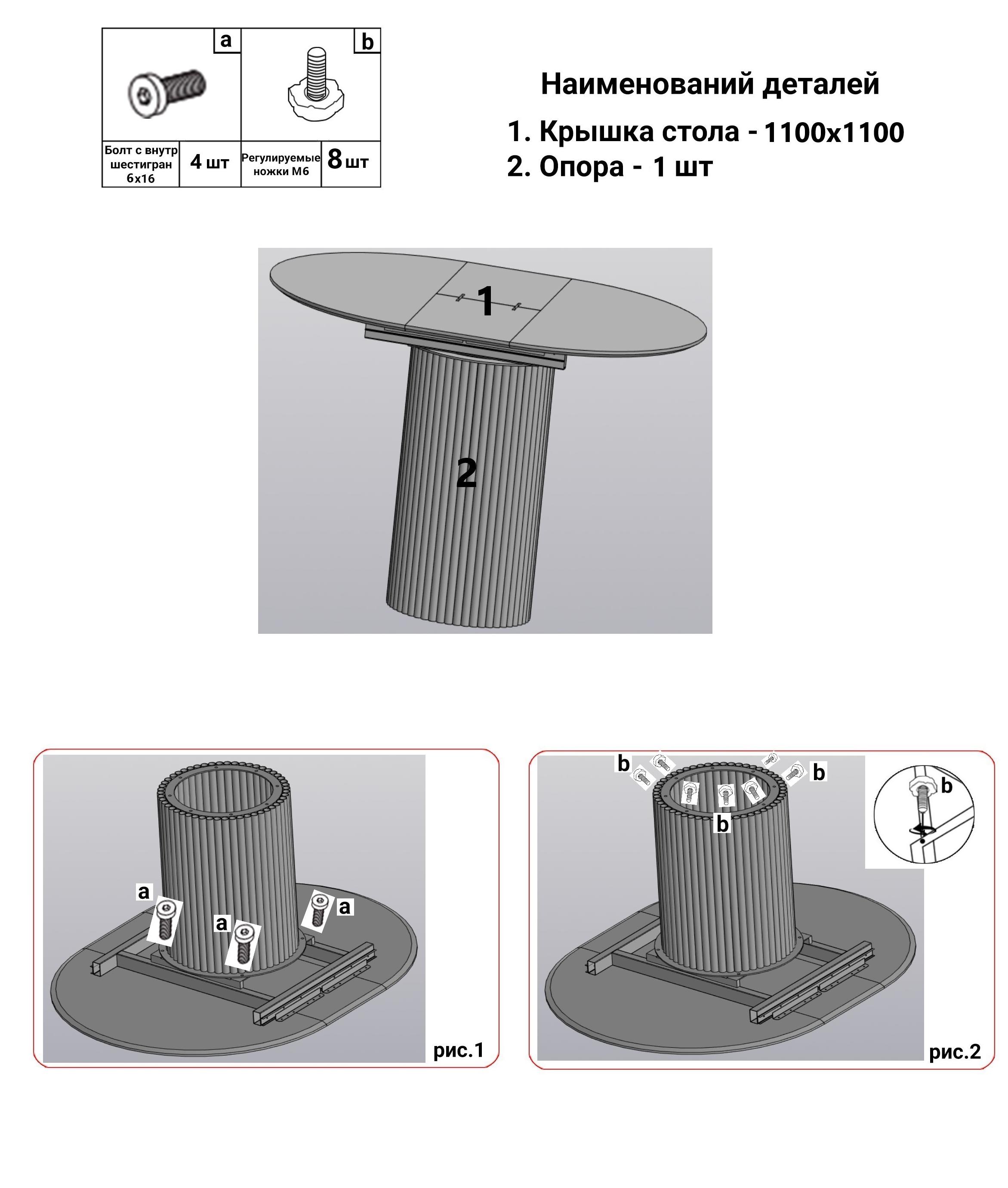 -Комфортный диаметр 1000 мм: вместит всю семью для уютных обедов и вечеров.