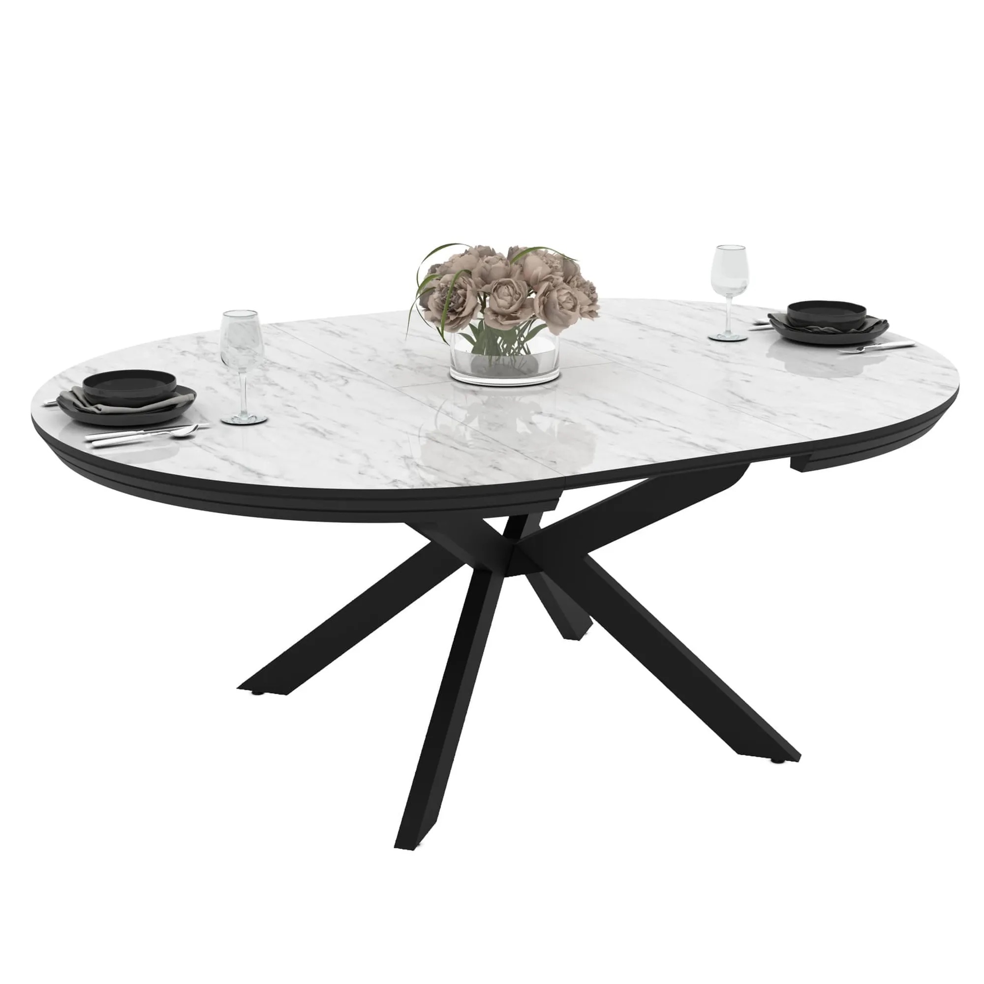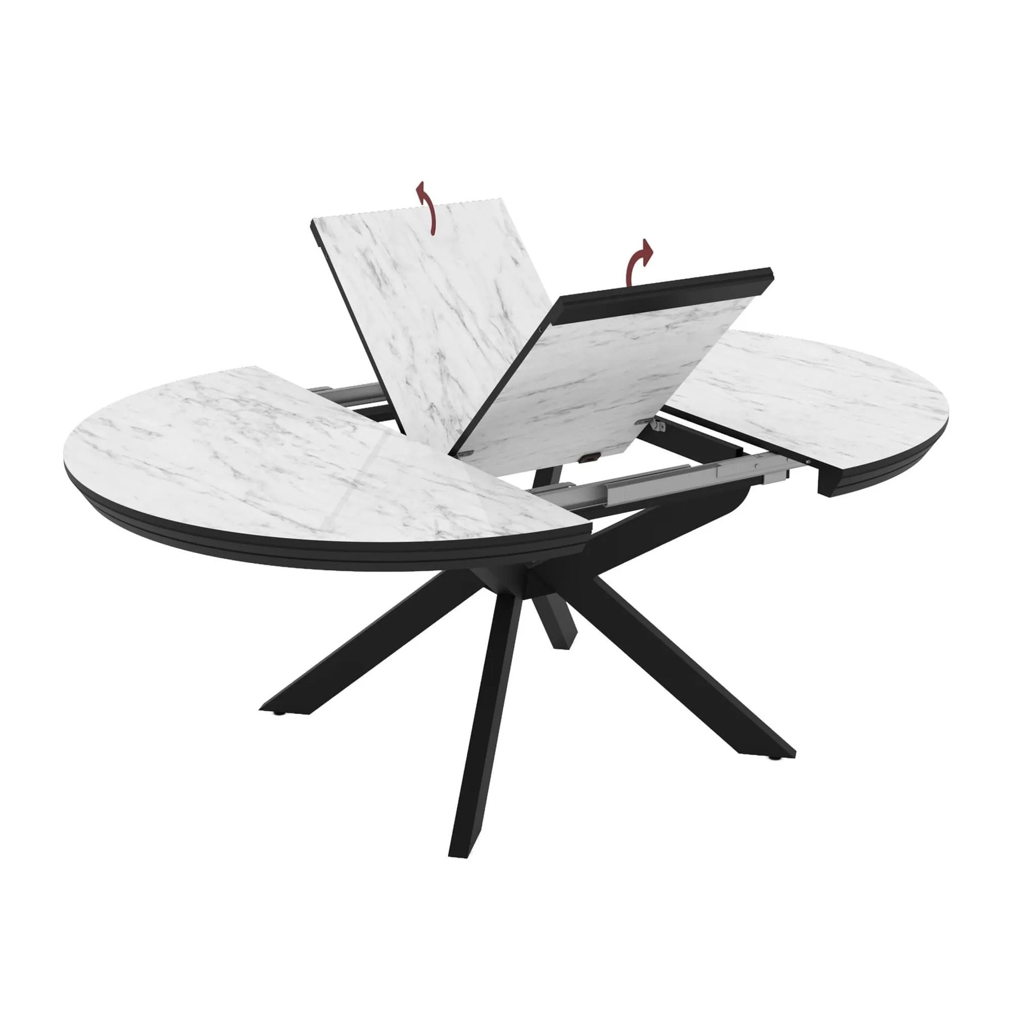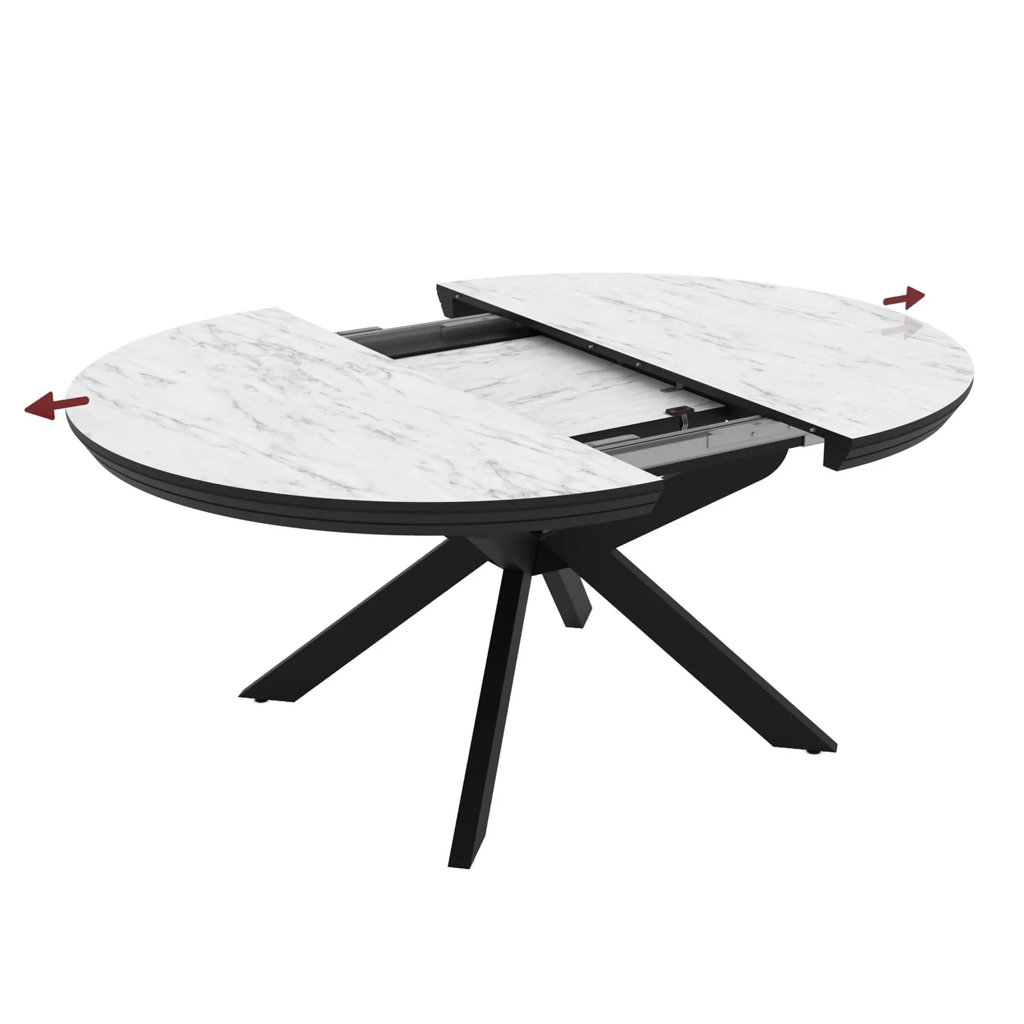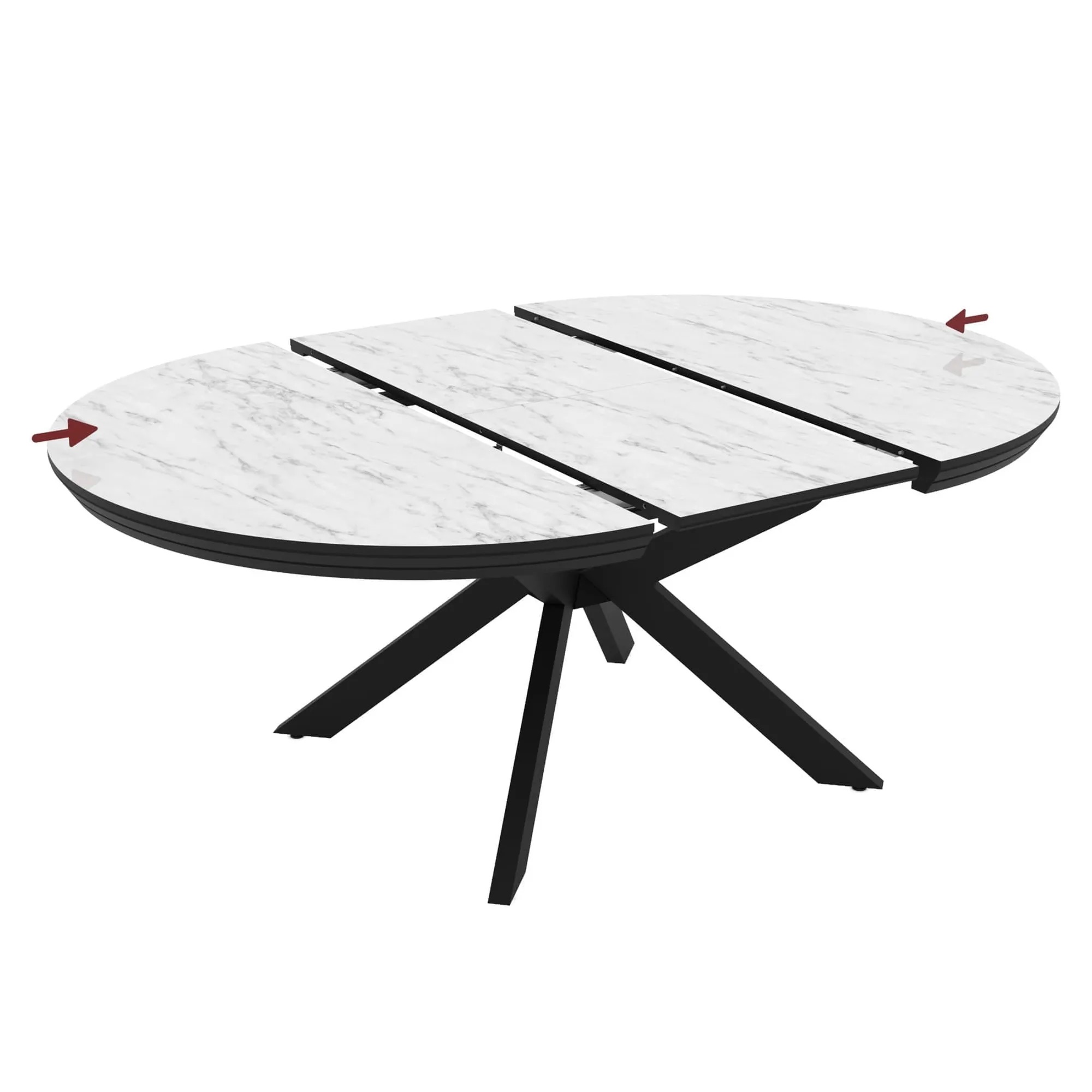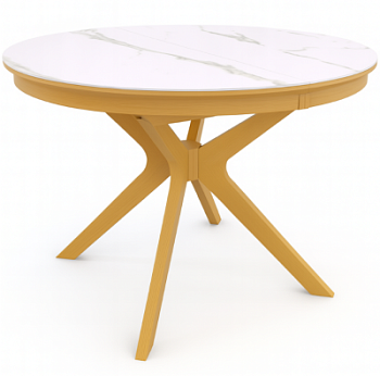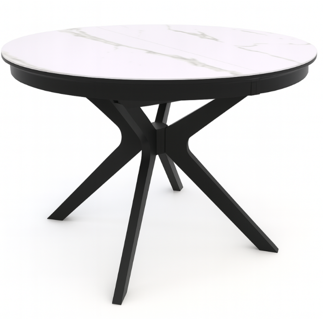 Идеально круглая столешница, разделённая пополам, при помощи механизма раскладывается и увеличивается в размере на 38 см.