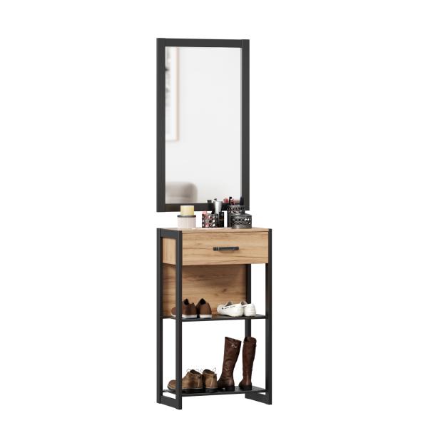 • Под полкой закреплена вешалка-опора (штанга-менсолодержатель) для плечиков и 5 крючков.