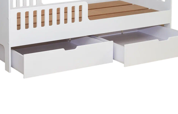Ящики для подростковой кровати Fiora, идеально подходят для подросших малышей, которые самостоятельно могут ухаживать за собой. Два крашенных фасада дают дополнительную эстетику в сочетании с кроваткой. Помимо визуального представления данные ящики очень вместительные и удобные в эксплуатации, т.к. на дне установлены прямоходные колесики для легкости выдвежения.