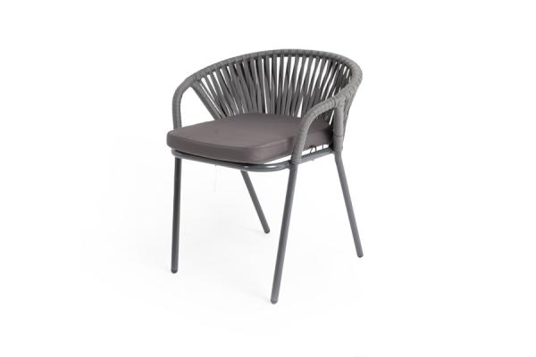 Стул "Женева", алюминиевый каркас, оплетен вручную эластичными синтетическими лентами из высокопрочных полиэфирных волокон, плоская веревка, в комплекте с подушкой, размеры 570х620х720, цвет бежевый